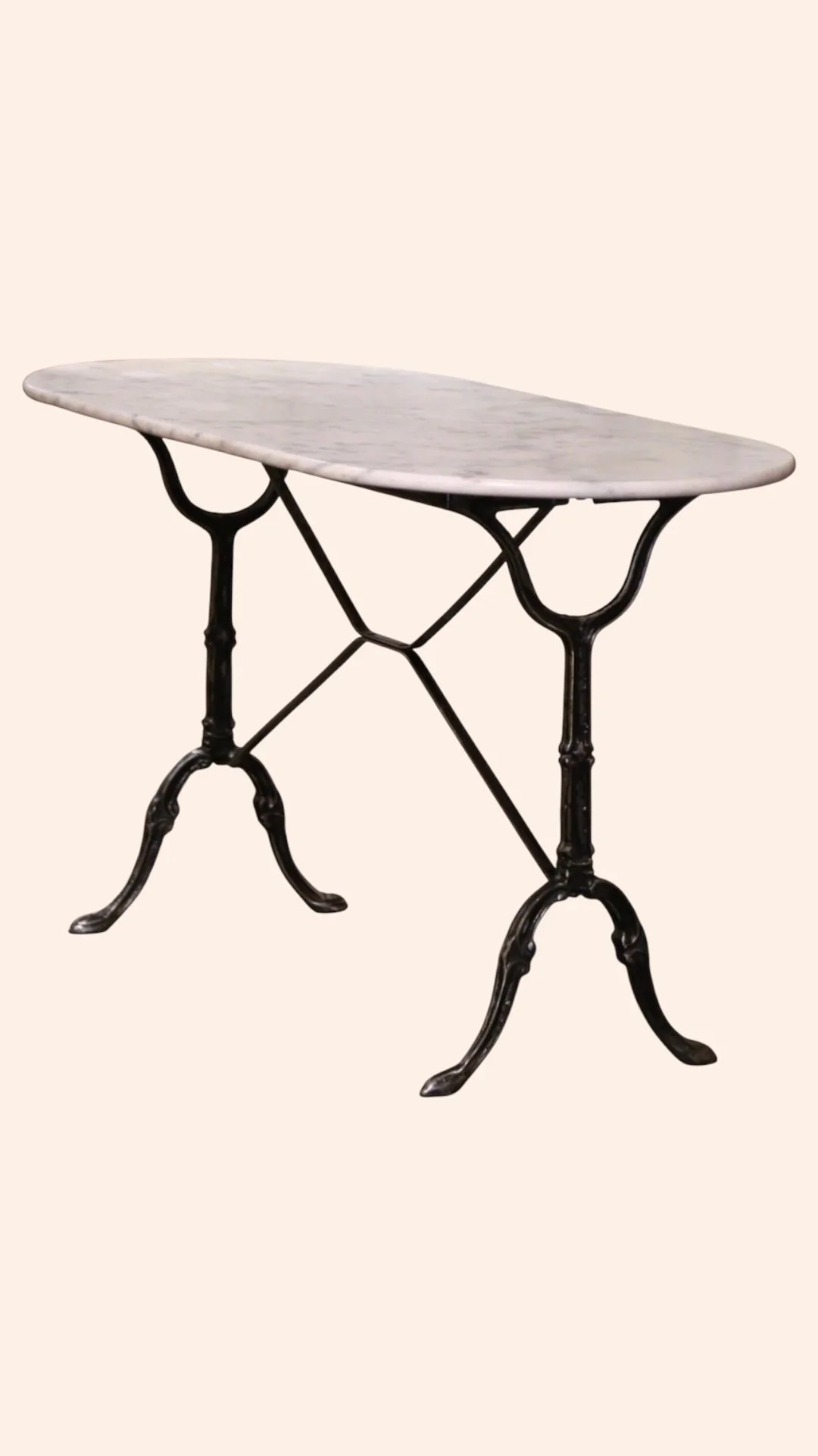 Beautiful vintage marble top bistro table with cast iron legs.